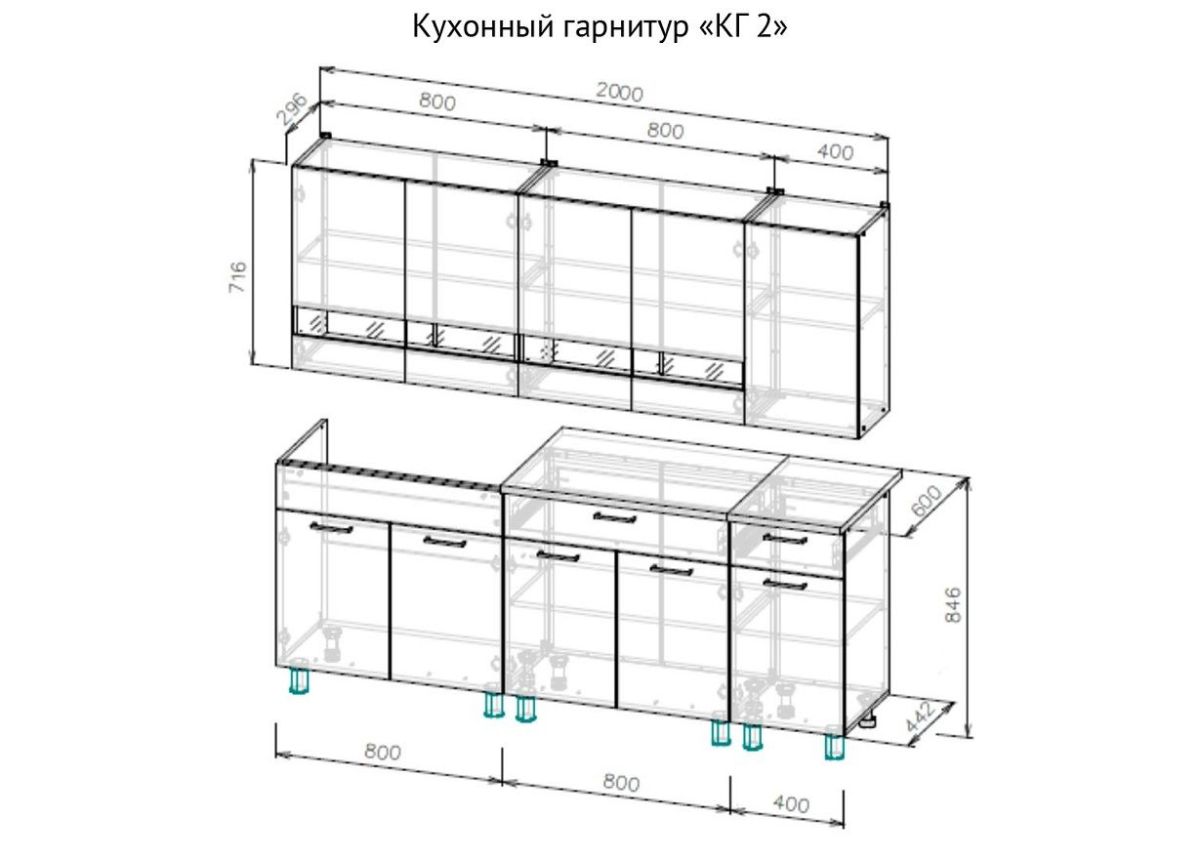 Размер (Ш*Г*В): 2000*846/716*600/296 мм