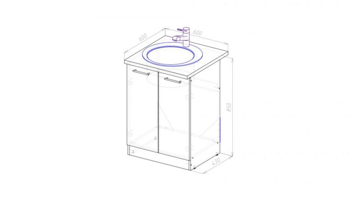 Ширина: 1500 мм; Глубина: 600 мм (со столешницей)