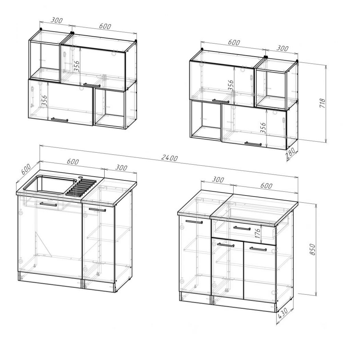 ***Мойки, смесители и посудосушители в комплекты гарнитуров не входят.