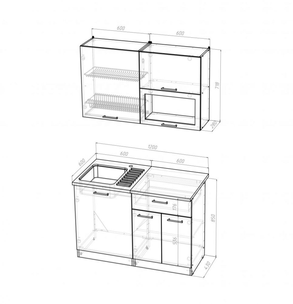Ширина: 1200 мм; Глубина: 600 мм (со столешницей)