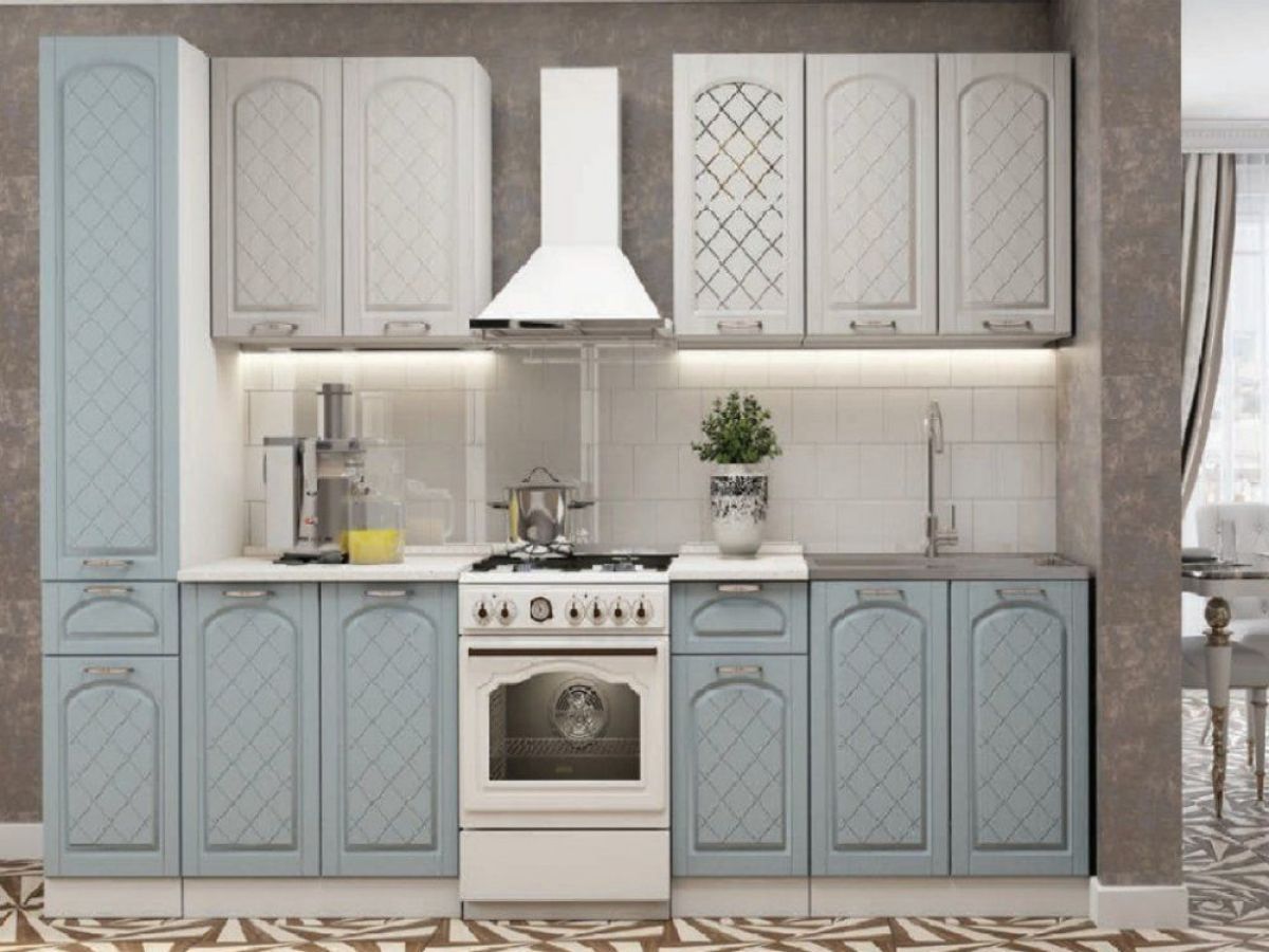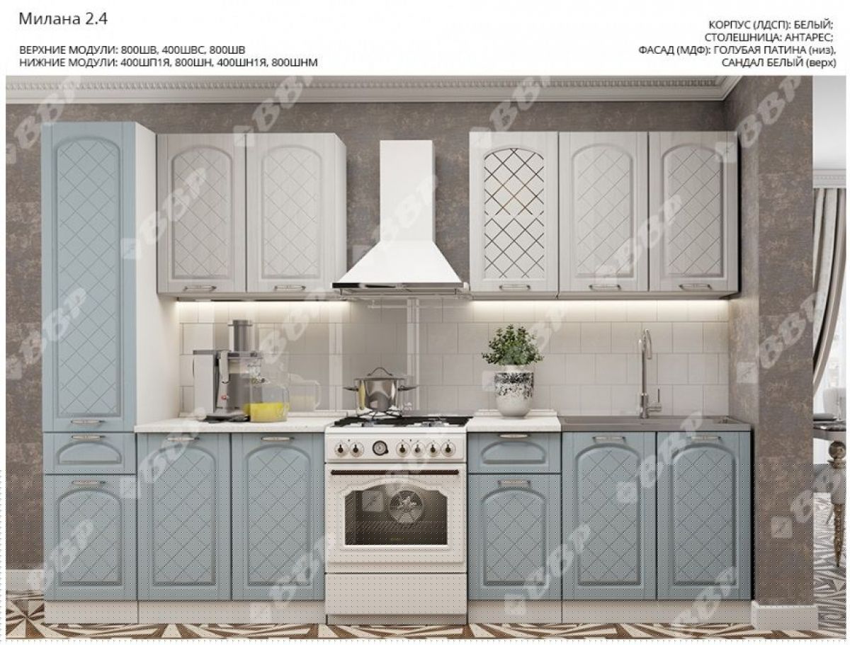 Кухонный гарнитур 2.4 м "Милана" (белый/белое дерево/голубая патина)