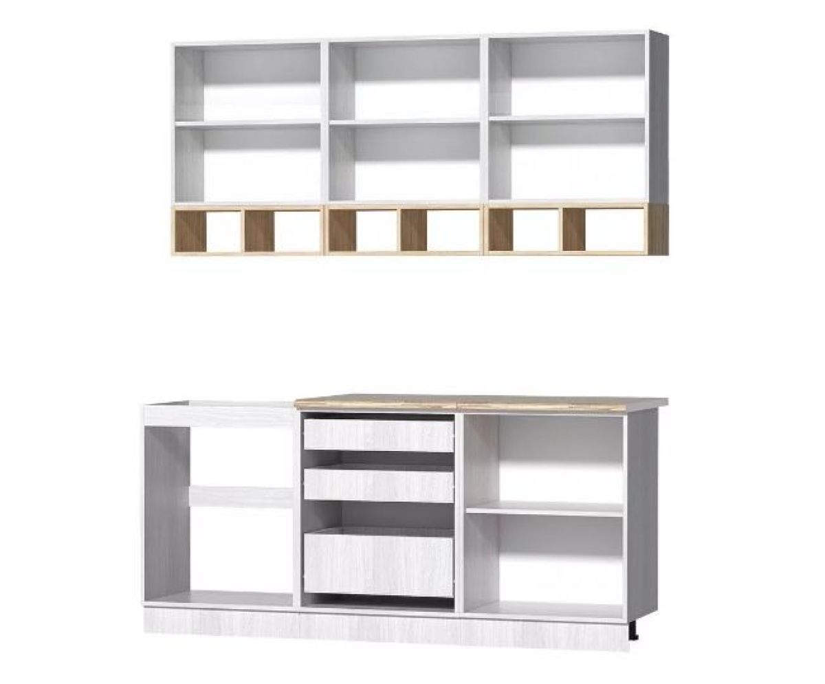 В дизайне кухонного гарнитура "Сорренто" используются текстуры светлого дерева - теплый насыщенный Дуб Сонома и белый Ясень Анкор Светлый. Компактные модули гарнитура позволяют рационально использовать пространство маленькой кухни.