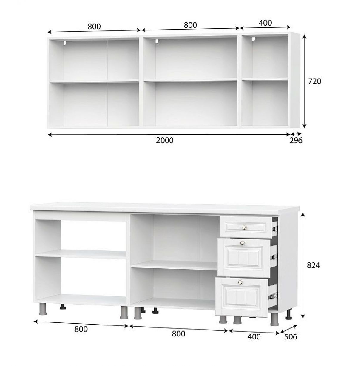 ПРОВАНС Кухонный гарнитур 2.0 м МДФ (без столешниц) Белый/Белый текстурный