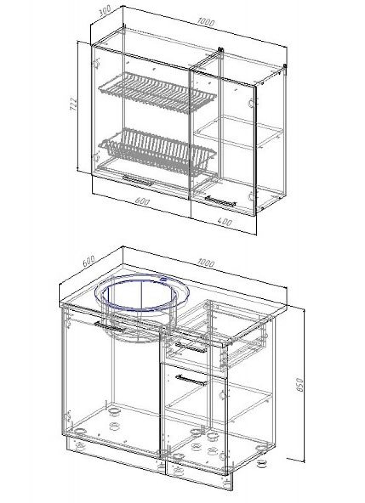 Ширина кухни 1000мм