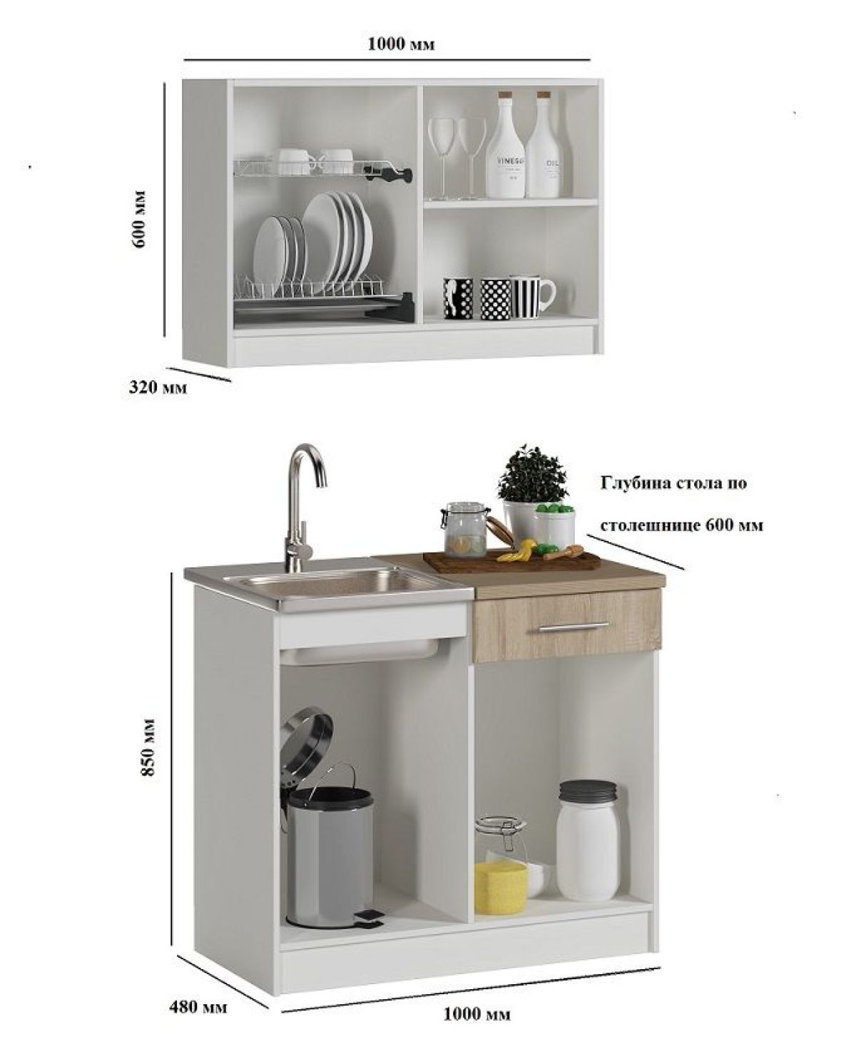 Кухонный гарнитур "Алиса" Мини №1 (посудосушитель в комплекте)