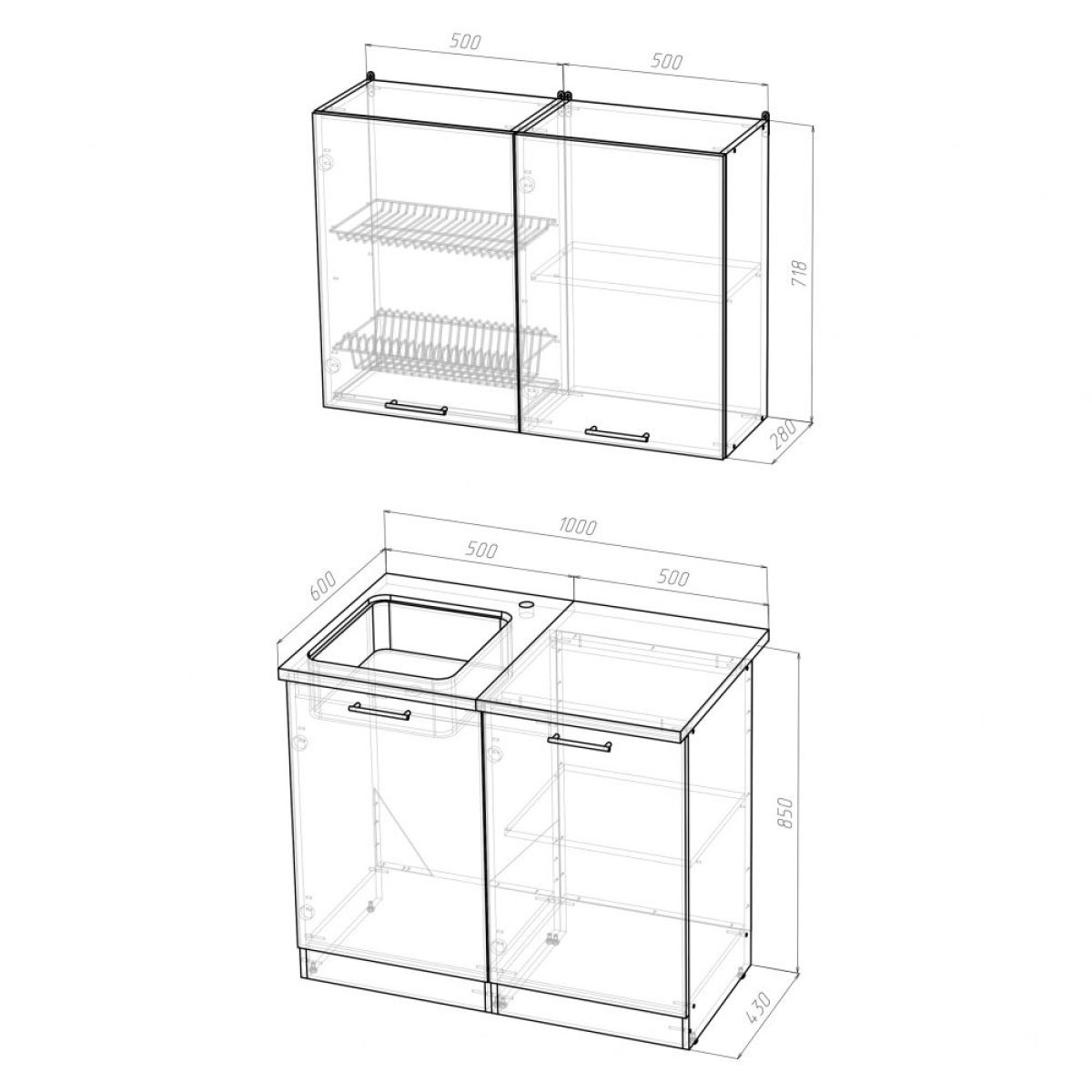 Ширина: 1000 мм; Глубина: 600 мм (со столешницей)
