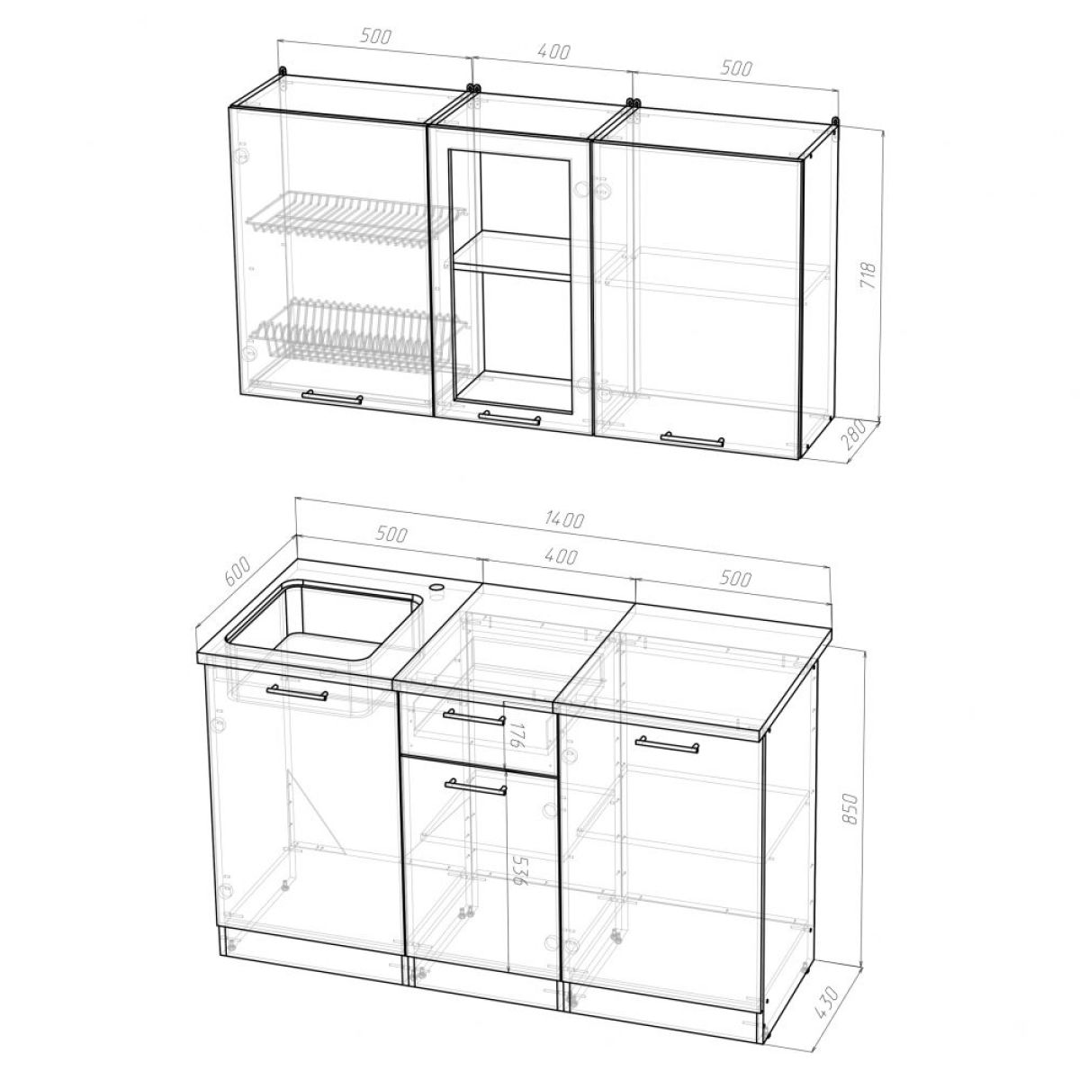 Ширина: 1400 мм; Глубина: 600 мм (со столешницей)