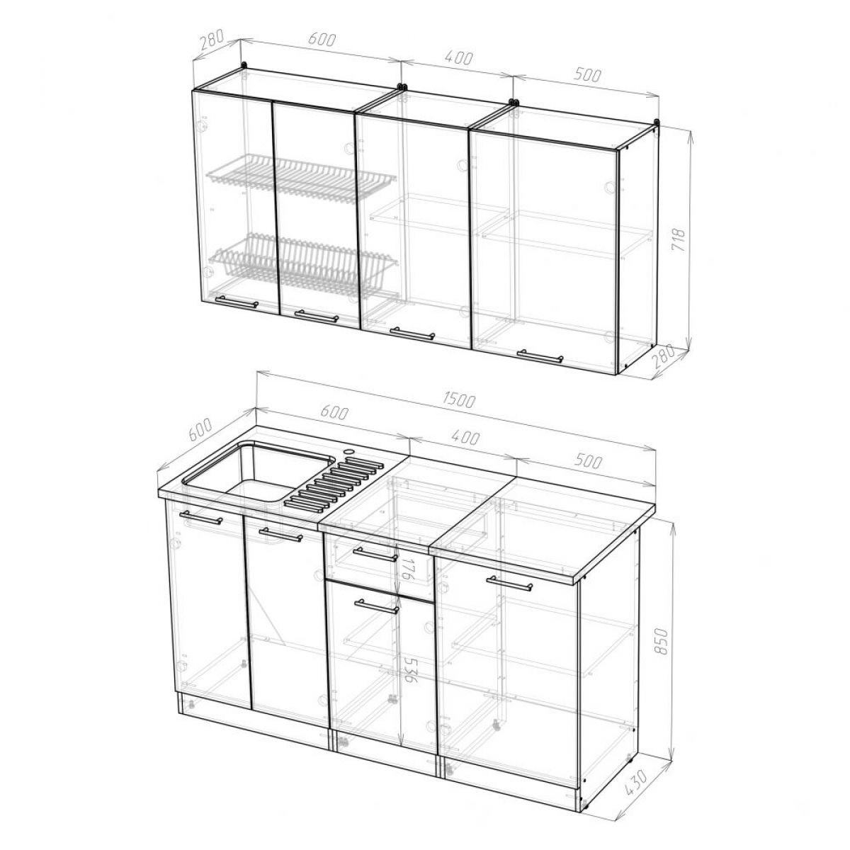 Ширина: 1500 мм; Глубина: 600 мм (со столешницей)