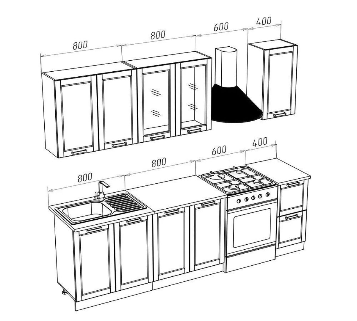 *В стоимость комплекта не входят и приобретаются отдельно: мойка, смеситель, сушка, карниз, подсветка