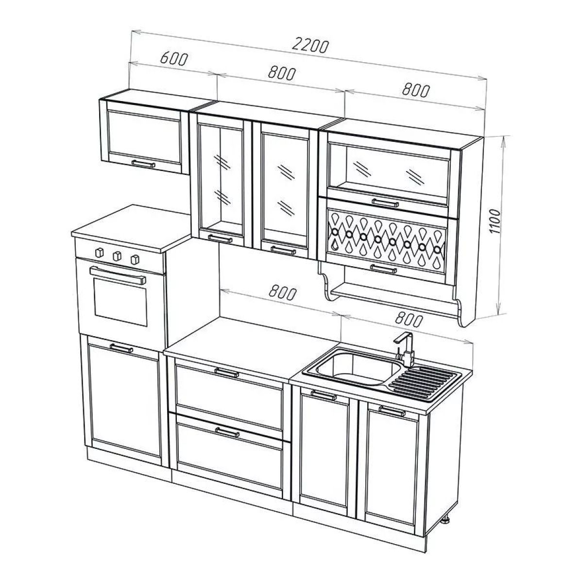 МИЛАНО Кухонный гарнитур 2,2 м Компоновка №3