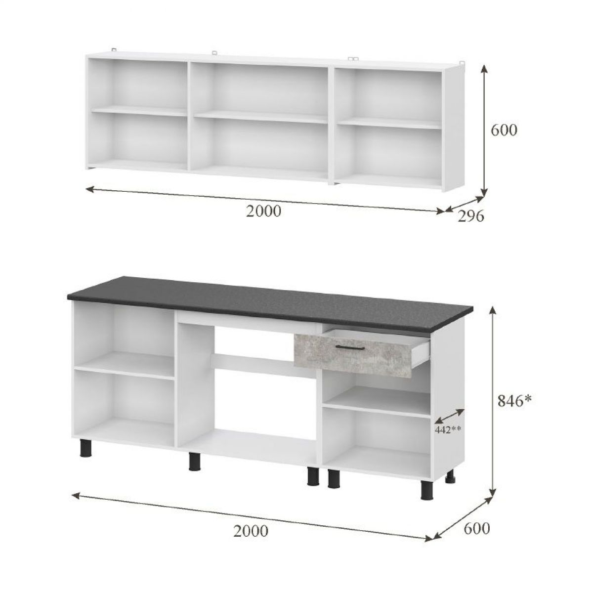 Кухонный гарнитур КГ-9 (Белый/Цемент темный/светлый/Черный) 2000