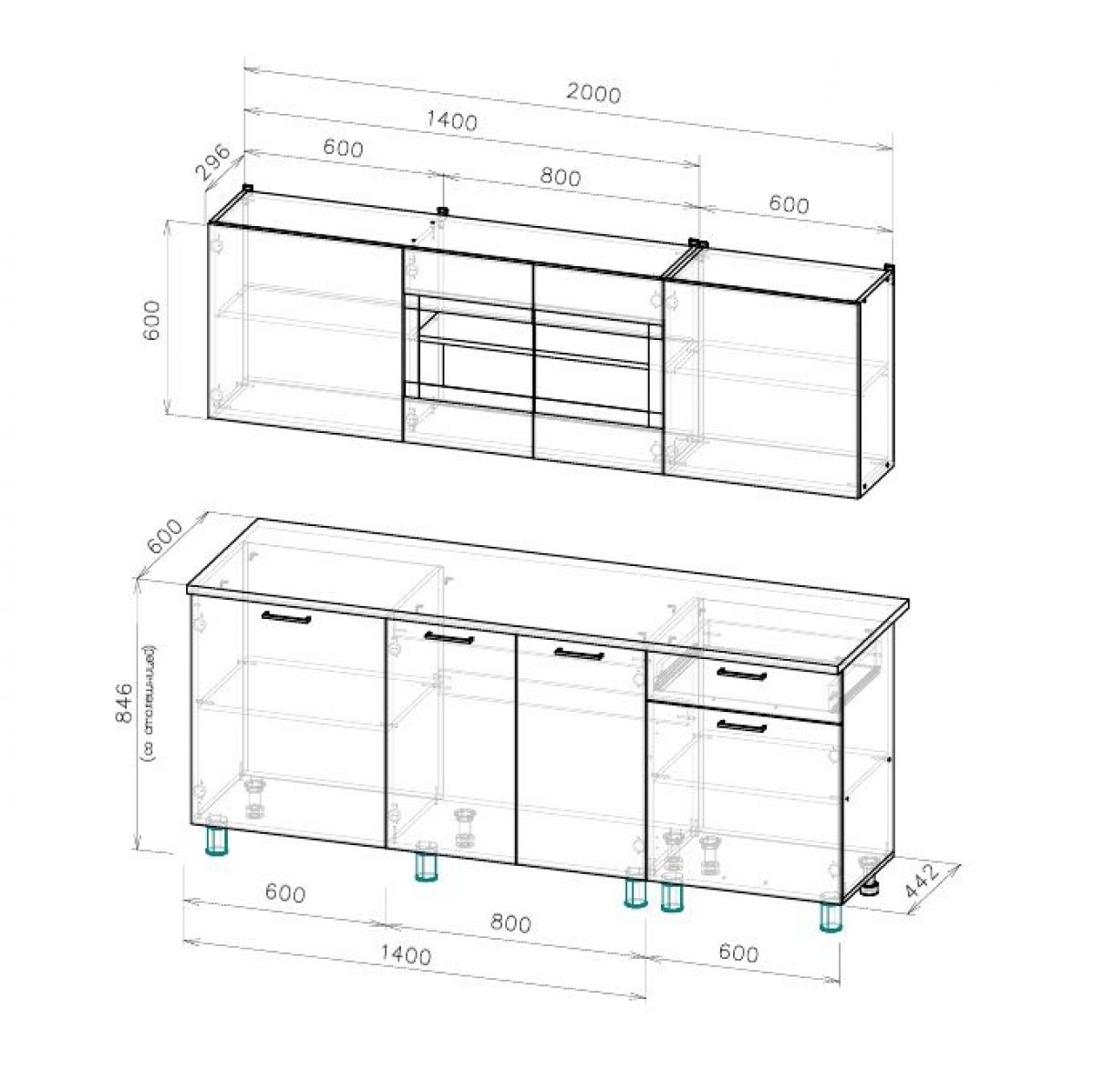 Размер (Ш*Г*В): 2000*600*h2140 мм