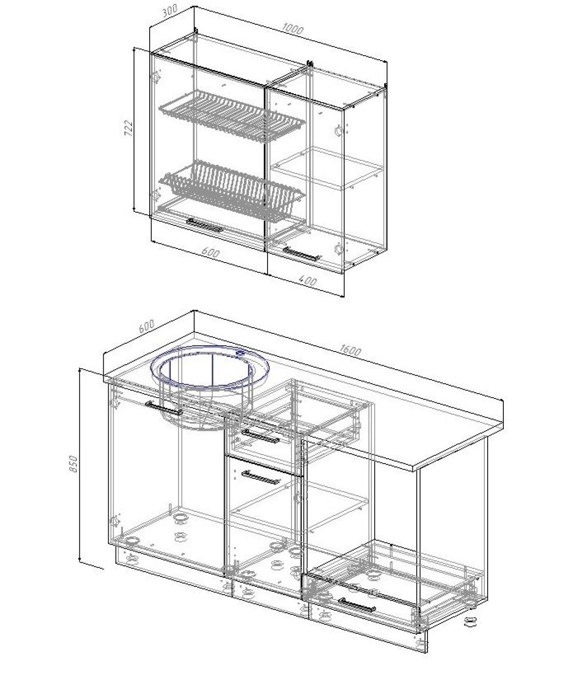 - Столешница: ЛДСП 26мм со скругленным краем (в пластике)