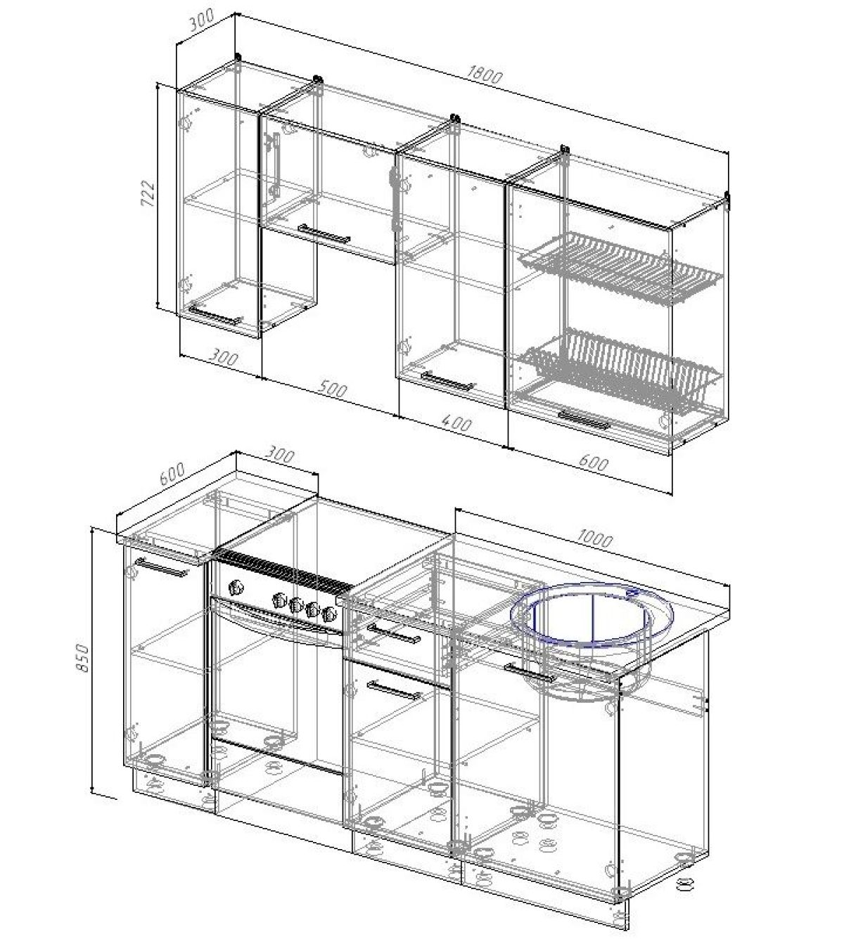 - Столешница: ЛДСП 26мм со скругленным краем (в пластике)