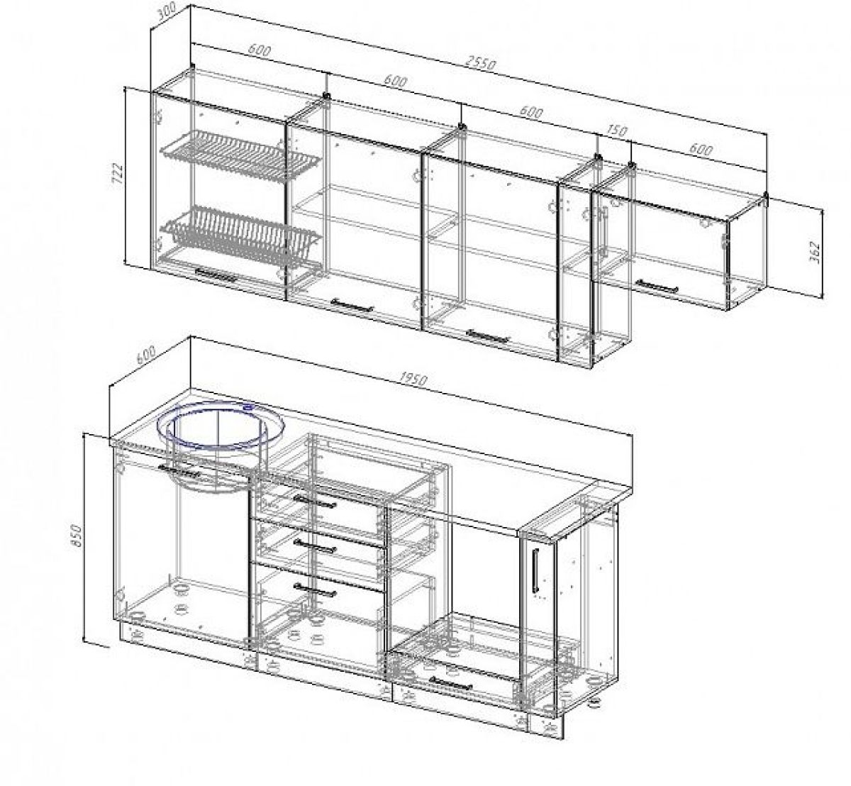 - Столешница: ЛДСП 26мм со скругленным краем (в пластике)