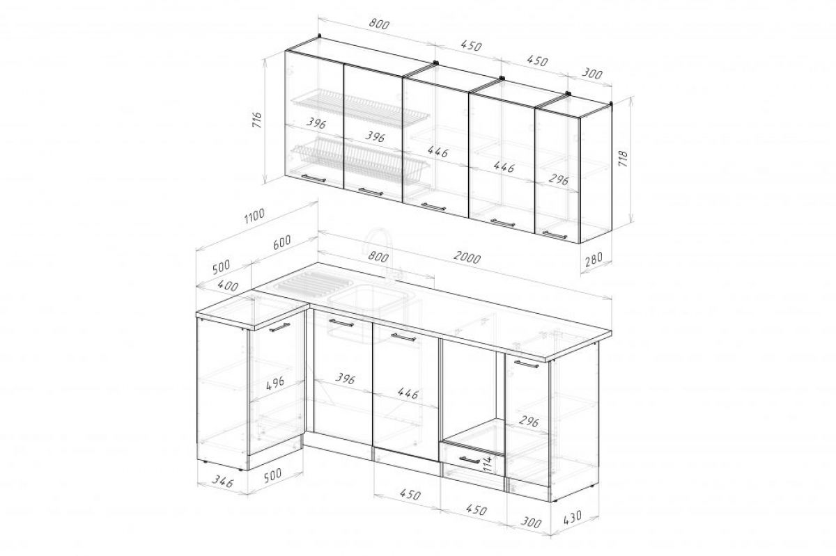АЛЬБА Кухонный гарнитур Прайм 2 400 (1100*2000 мм)