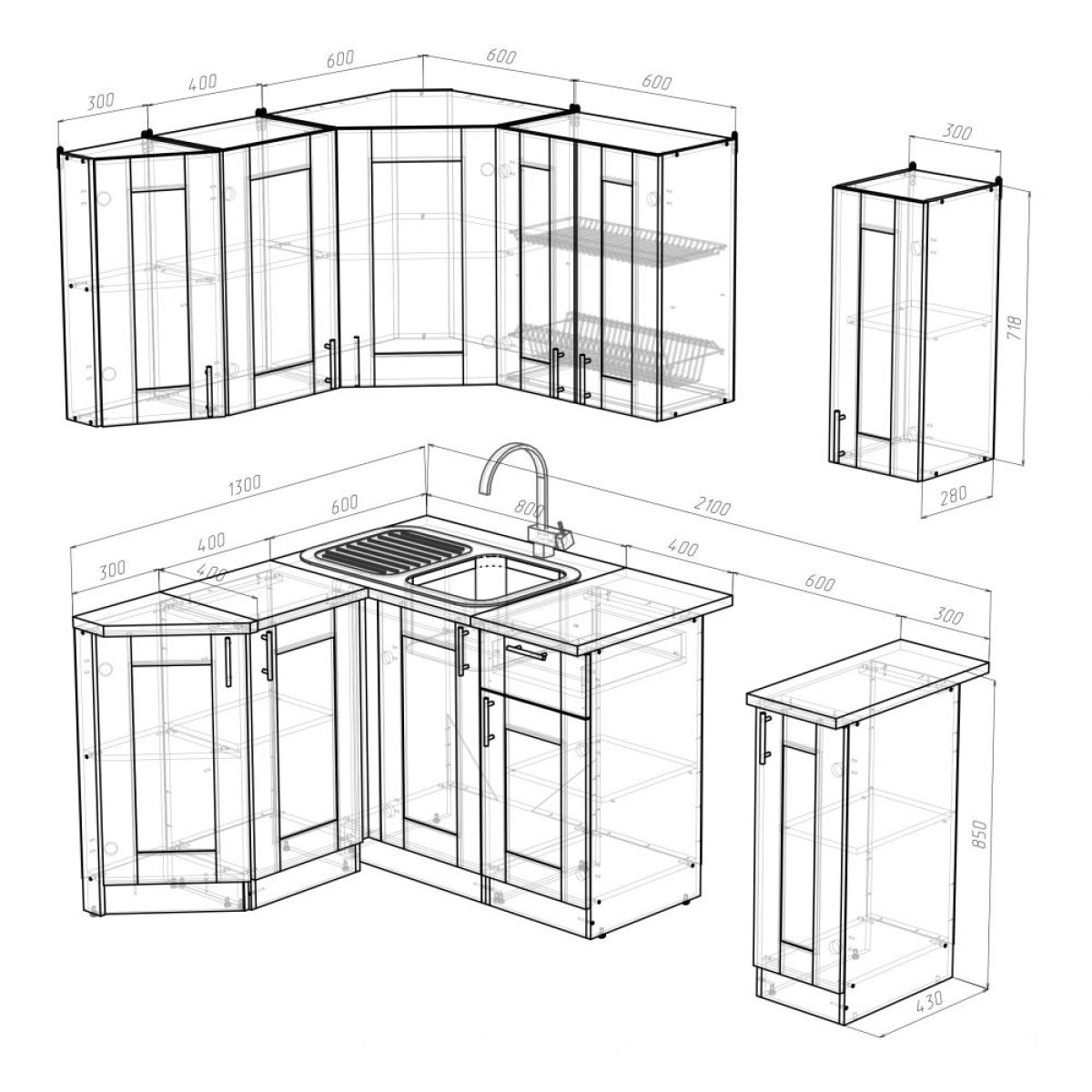 Ширина: 1300*1500 мм; Глубина: 600/400 мм (со столешницей)