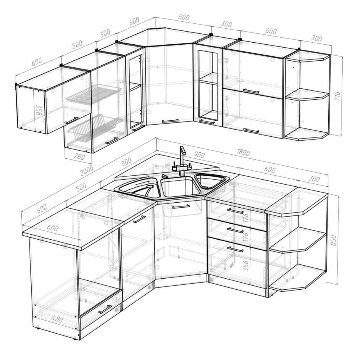 Ширина: 2000*1800 мм; Глубина: 600 мм (со столешницей)