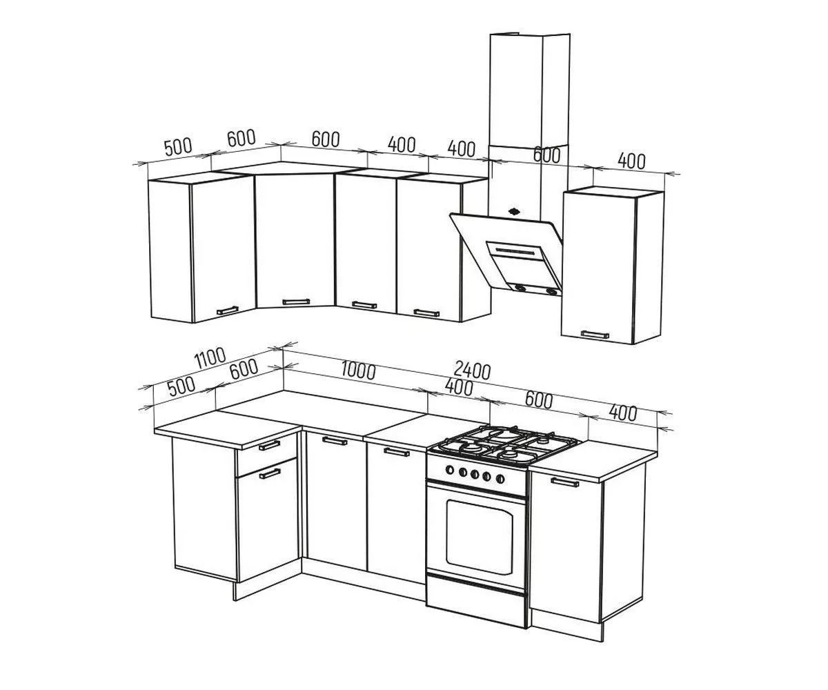 ТЕХНО Кухонный гарнитур угловой 1,8х1,1 м Компоновка №6