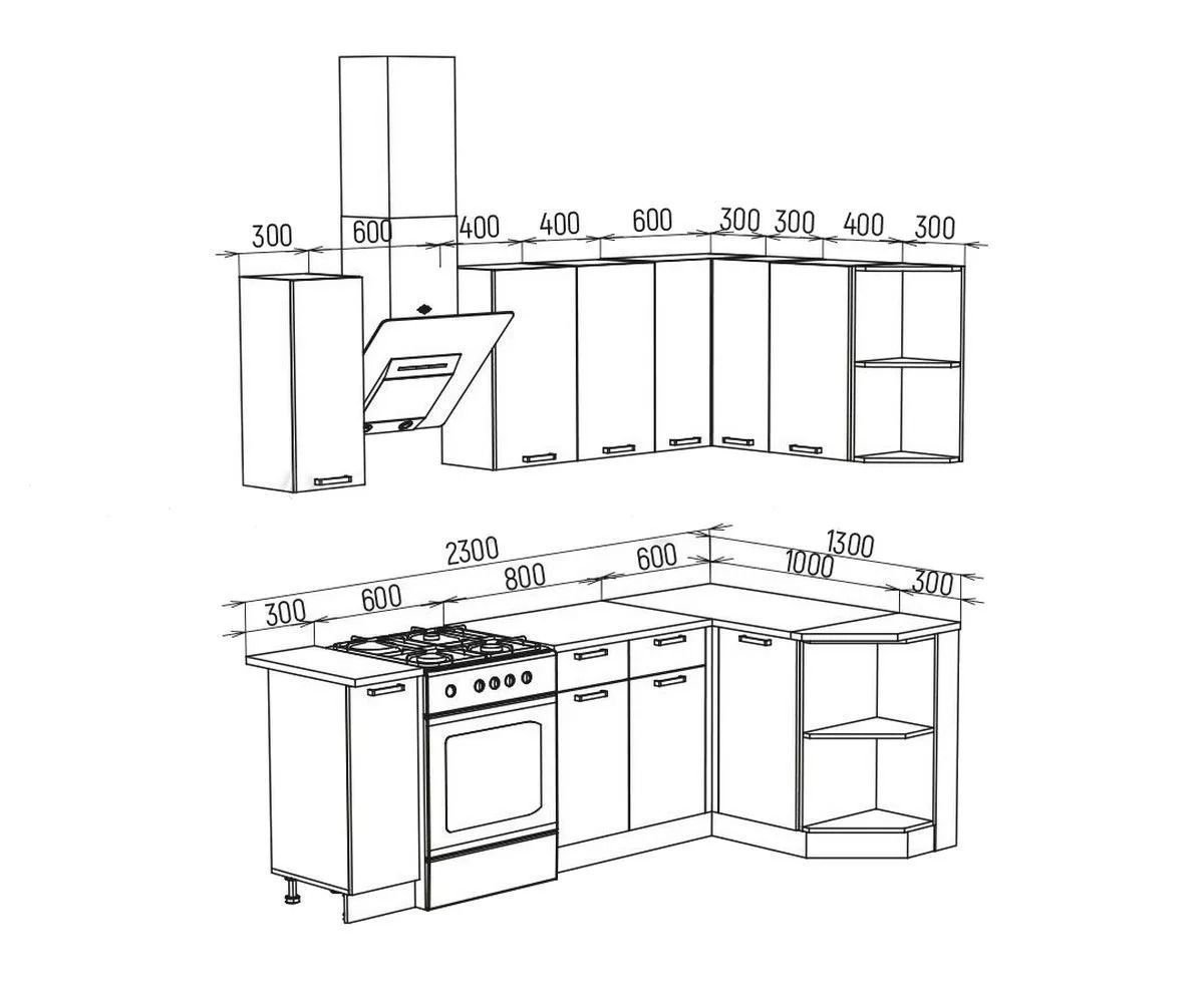 ТЕХНО Кухонный гарнитур угловой 1,7х1,3 м Компоновка №6