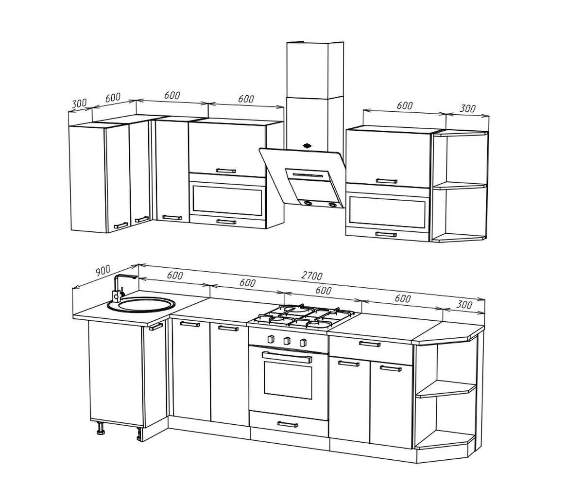ТЕХНО Кухонный гарнитур угловой 2,7х0,9 м Компоновка №2
