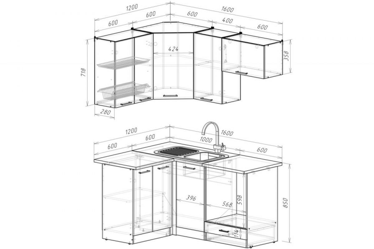 Ширина: 1200*1600 мм; Глубина: 600 мм (со столешницей)