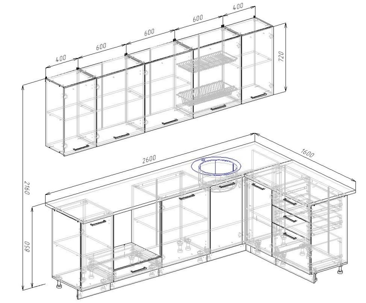 - Столешница: ЛДСП 26мм со скругленным краем (в пластике)