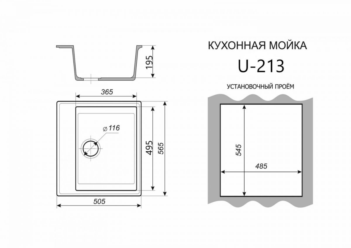 Каменная мойка ULSTONE U-213 (565х505)