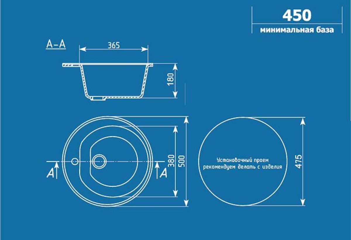Круглая мойка с отверстием под смеситель ULGRAN U-101