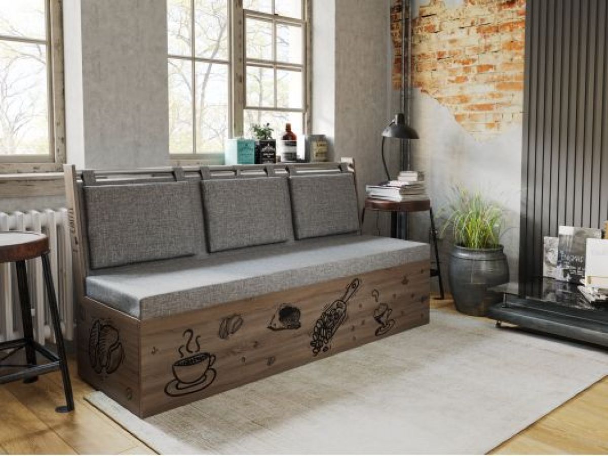 Скамья прямая РОДЕНГО Рогожка серая/Сонома трюфель