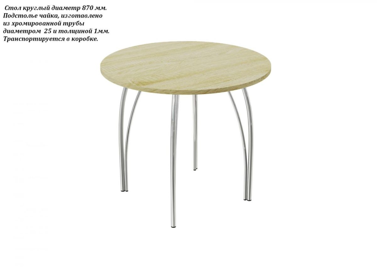 Диаетр столешницы 870 мм. Толщина столешницы 16мм.