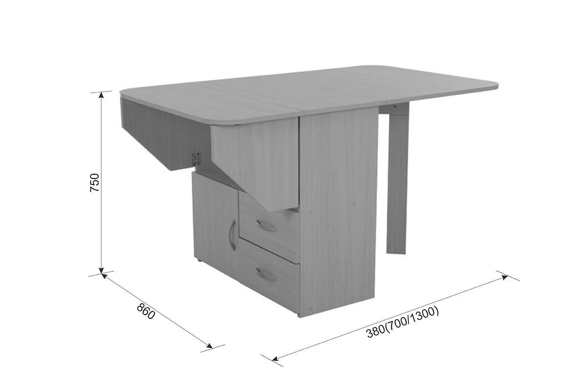 Состоит из: стола-книжки с 2-мя выдвижными ящиками и шкафом. Изделие симметричное.