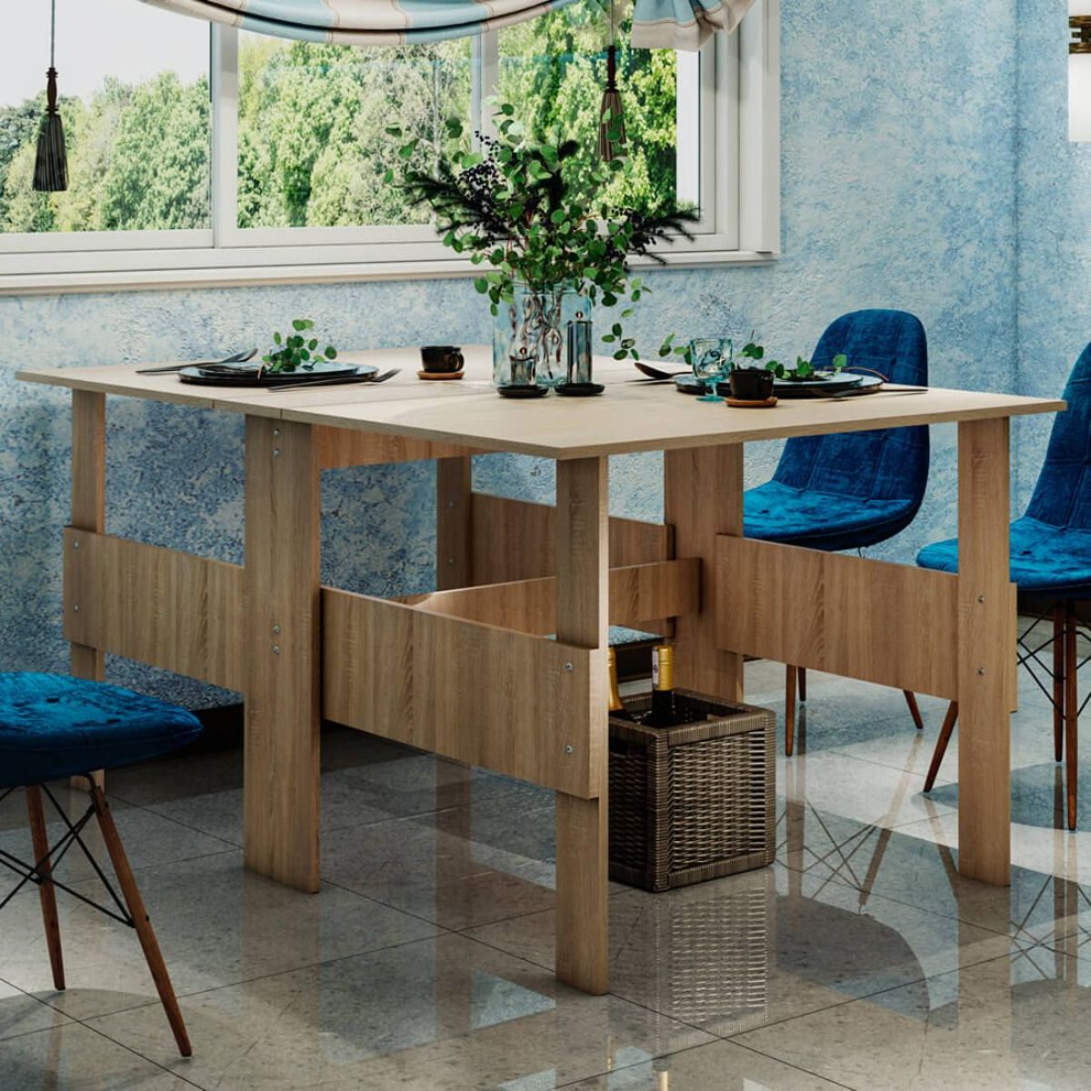 Практичный вариант для малогабаритного помещения – стол-книжка Стандарт. Габариты в разложенном виде (ШхВхГ): 1000х750х1600 мм.