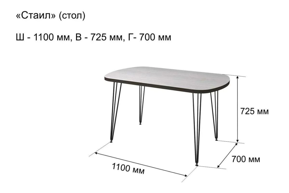 Стол «Стайл» имеет столешницу со скругленными углами и устойчивые металлические опоры ФМС.