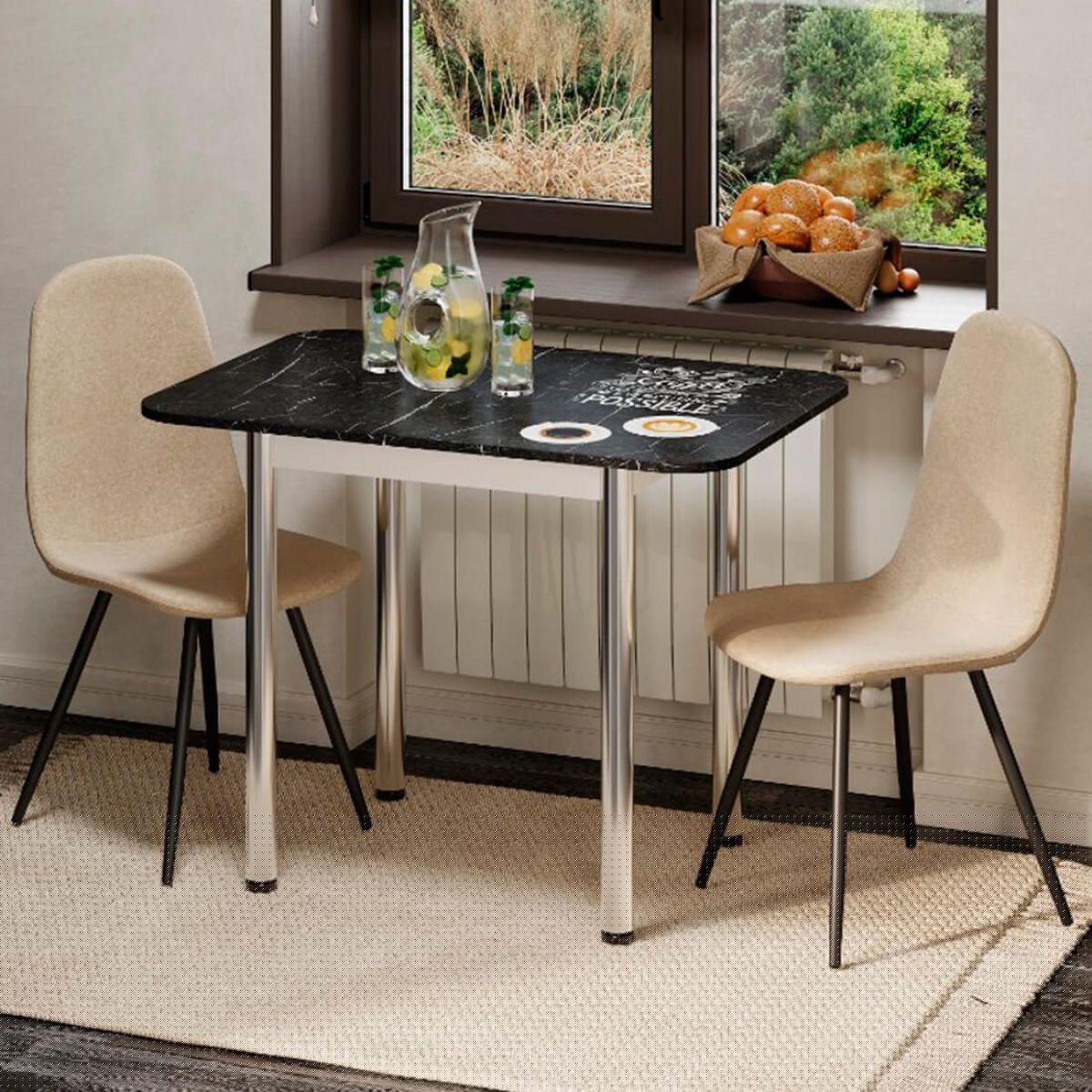 Стол с фотопечатью на металлических хромированных ножках - универсальный современный предмет кухонной мебели.