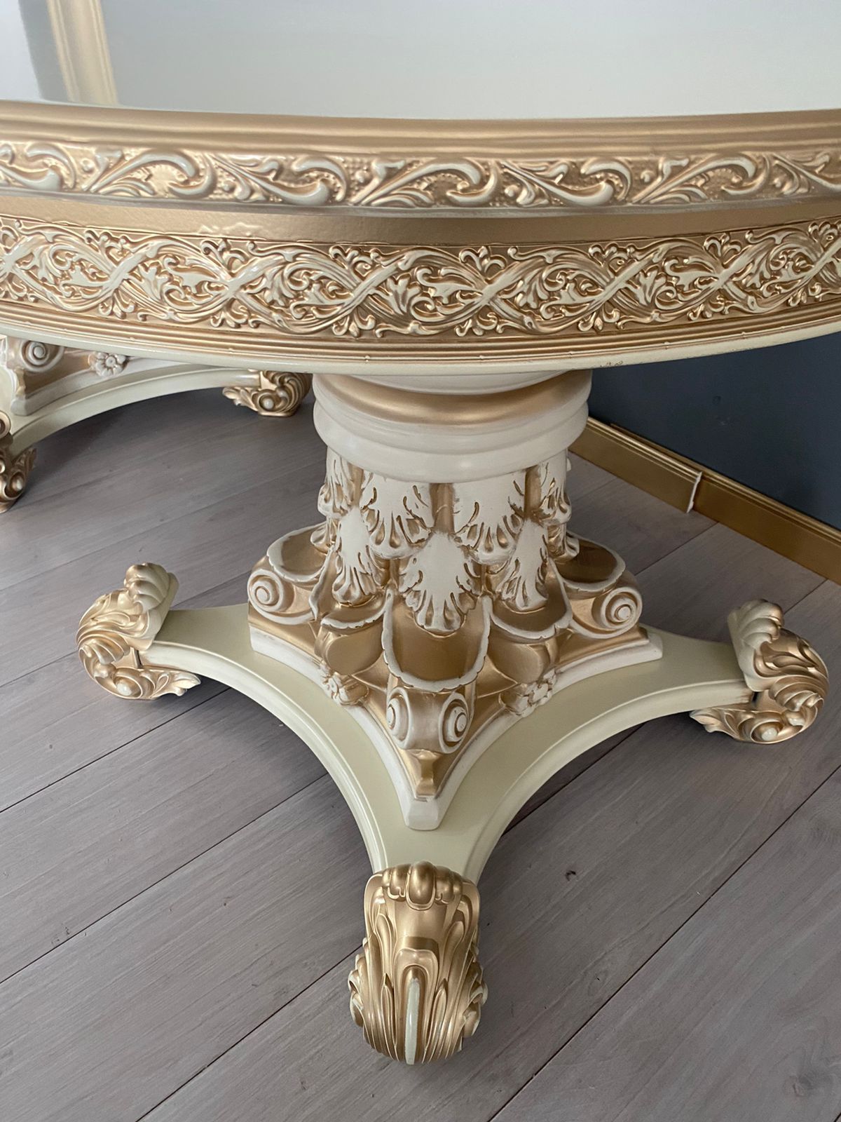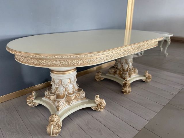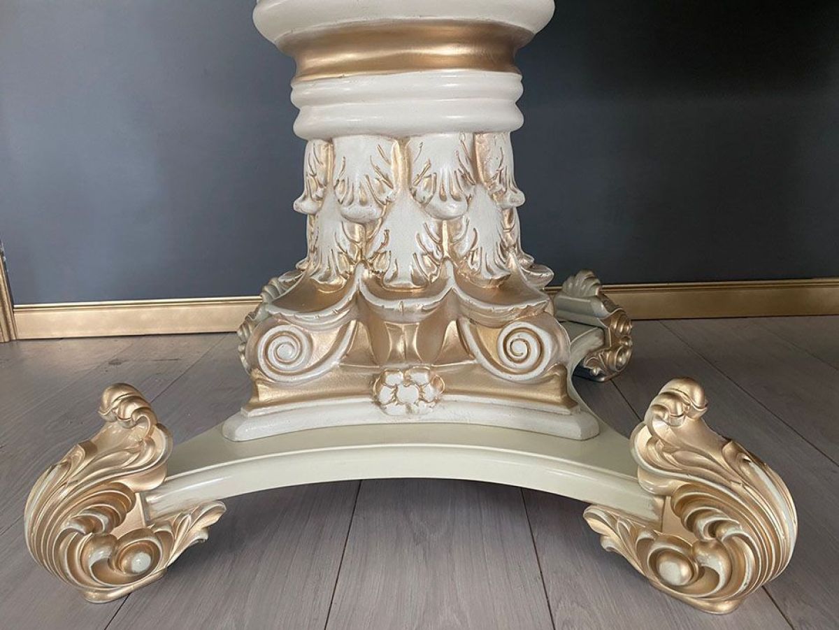 Материал: Столешница МДФ, подстолье фанера, нижнее основание из полиуретана, эмаль, глянцевый лак.