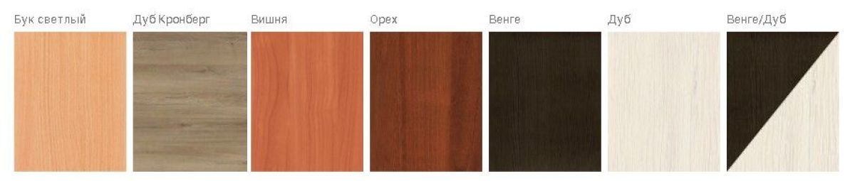 Цвета исполнения: Бук светлый, Вишня, Дуб, Венге, Венге/Дуб, Дуб Кронберг (с удорожанием данного цвета +15% к основной цене)