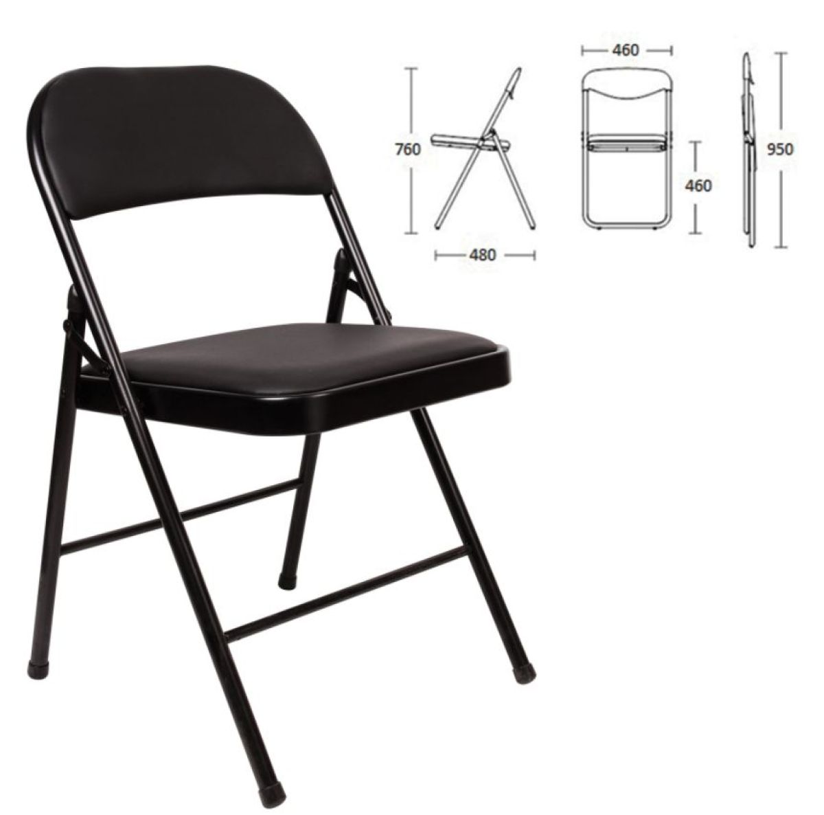 Стул складной для дома и офиса BRABIX "Golf Plus CF-003 Комфорт", черный каркас, кожзам черный, 531566