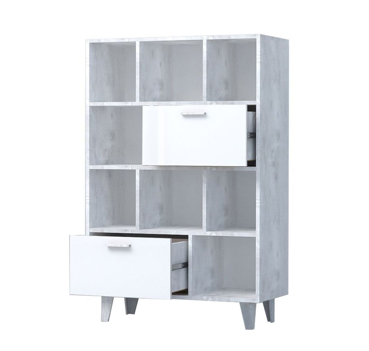 Комод Эго К-1, 2 ящика (на ножках) Бетон светлый/Белый глянец