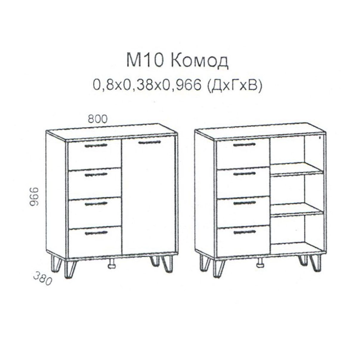 Колибри М10 Комод 1дв, 4ящ. (дуб золотой-железный камень)