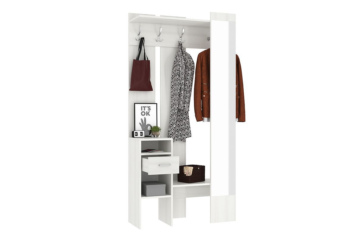 Штанги для плечиков, крючков для одежды, открытой ниши для обуви, полок под мелочи, зеркала, полки для головных уборов, выдвижного ящика.
