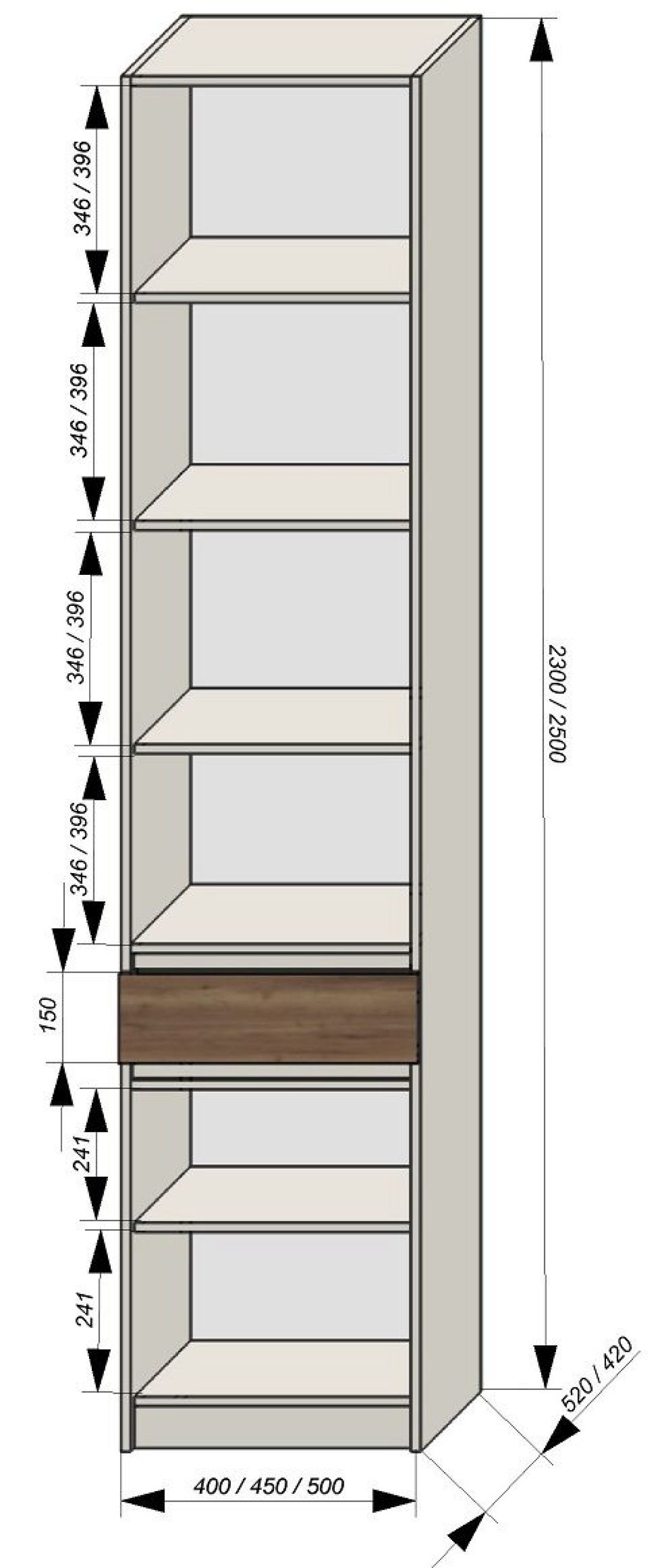 *Возможна комплектация модуля с выдвижными ящиками направляющими скрытого монтажа soft-closing (плавное закрывание) несущей способностью до 20 кг.