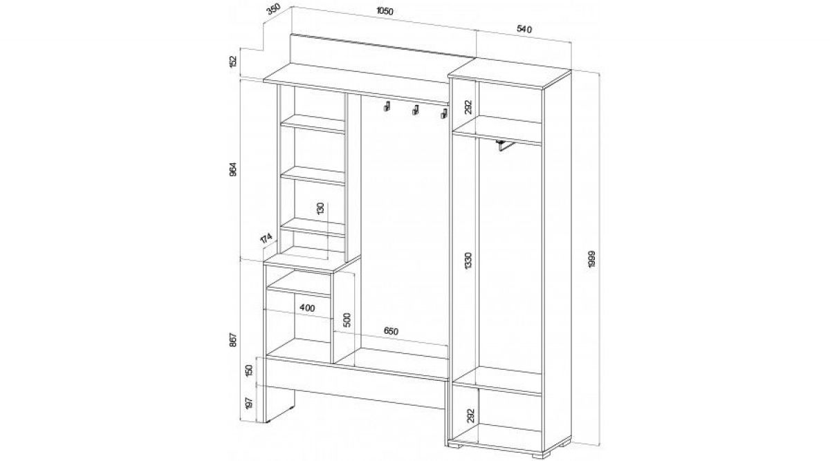 Габаритные размеры Ш*Г*В: 1590*350*2000 мм