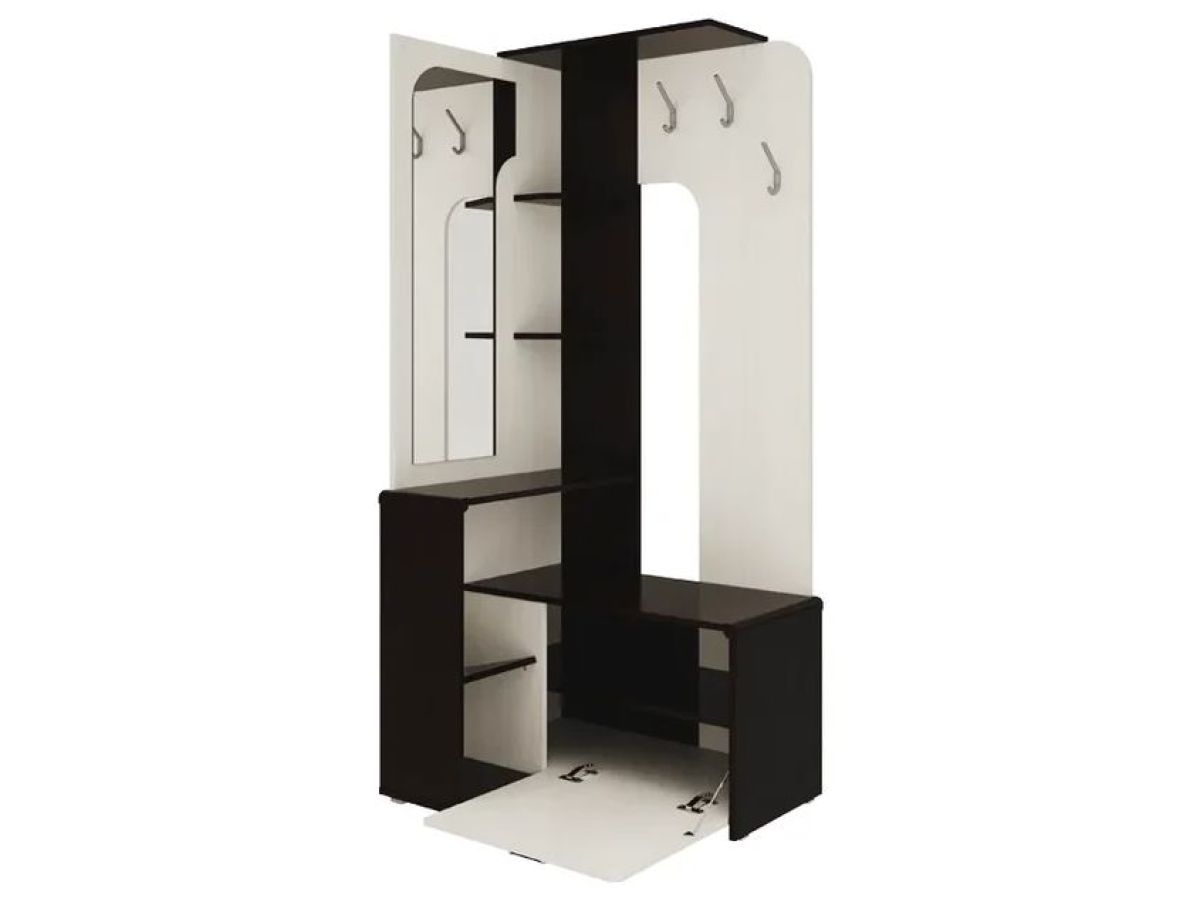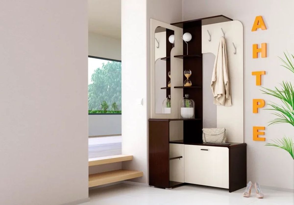 Прихожая «Антре» – компактная и достаточно вместительная прихожая с оригинальным угловым дизайном. В конструкции предусмотрено всё необходимое для хранения верхней одежды, обуви, аксессуаров.
