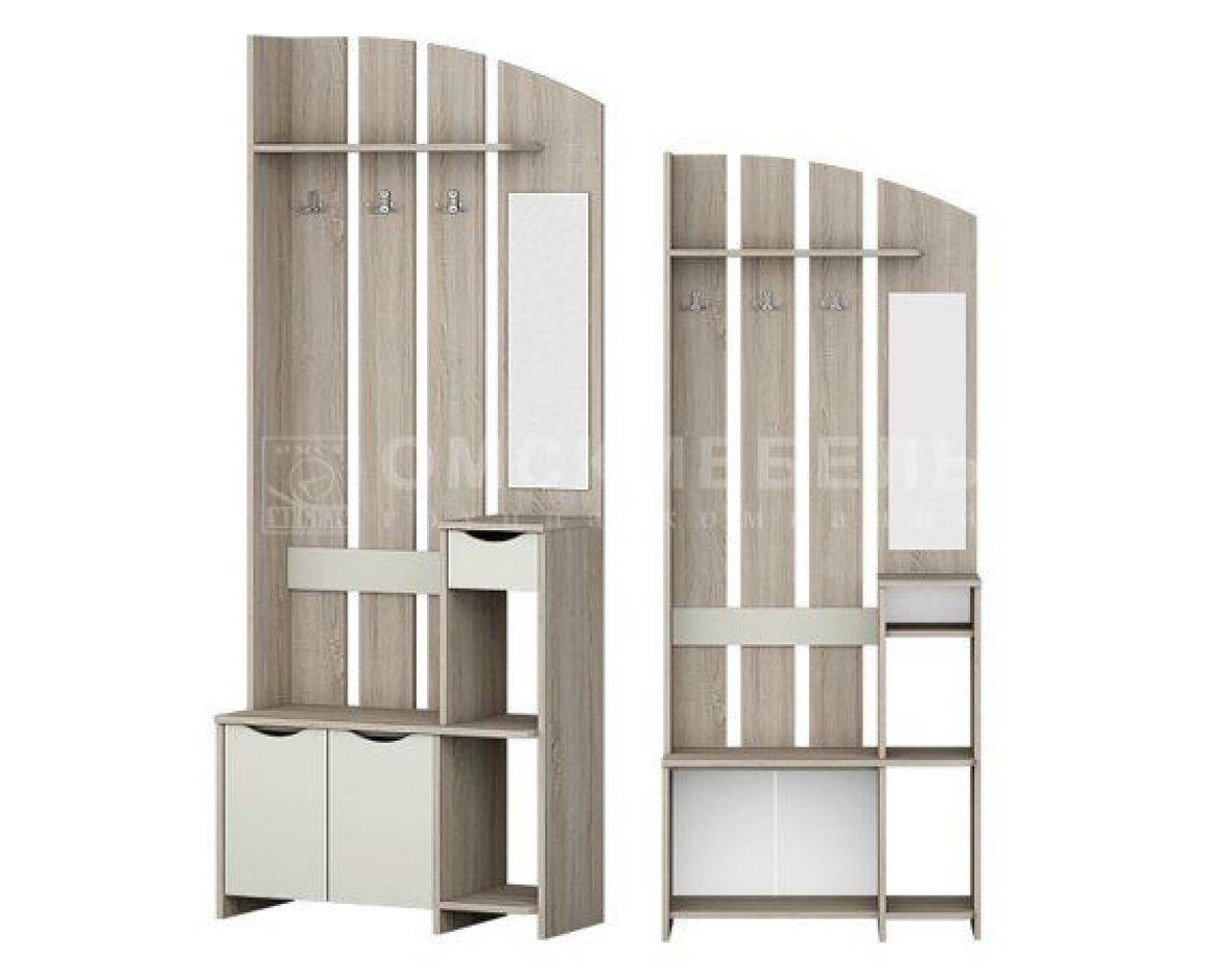 Это прихожая, которая при своих небольших размерах достаточно функциональна. Она состоит из отделений для верхней одежды, двух ящиков для обуви, а также трез полок для различных мелочей. Так же прихожая оснащена небольшим зеркалом. Выпускается прихожая в цвете: дуб сонома/ваниль.