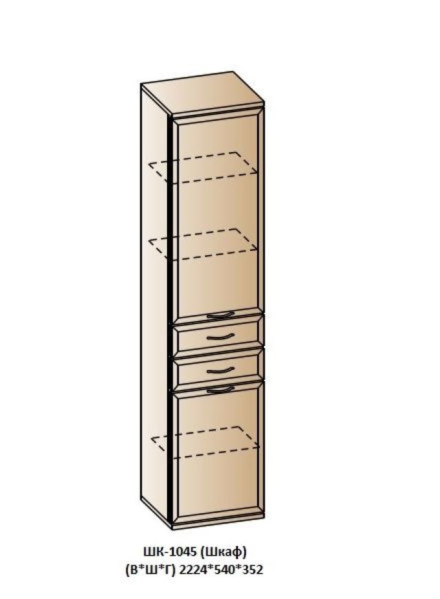 Фасад имеет уникальное сочетание глубокого тиснения и эффекта патины, присущей классическому стилю. Изящество фасада подчеркивает стекло с алмазной гравировкой и фацетом. Мебель изготавливается из высококачественных материалов: ЛДСП, МДФ (фасад).