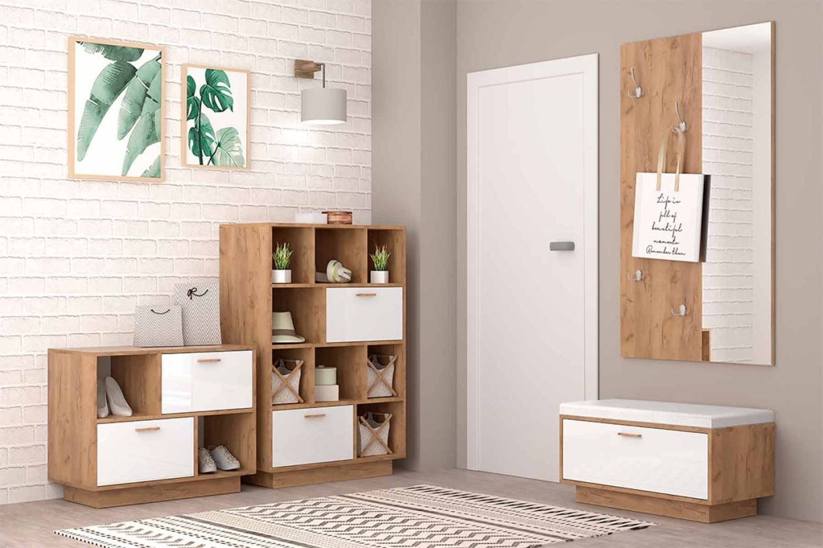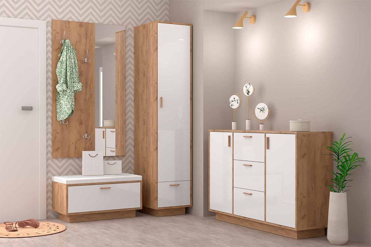 Модульная Прихожая Эго (дуб крафт золотой/белый глянец) цоколь