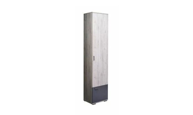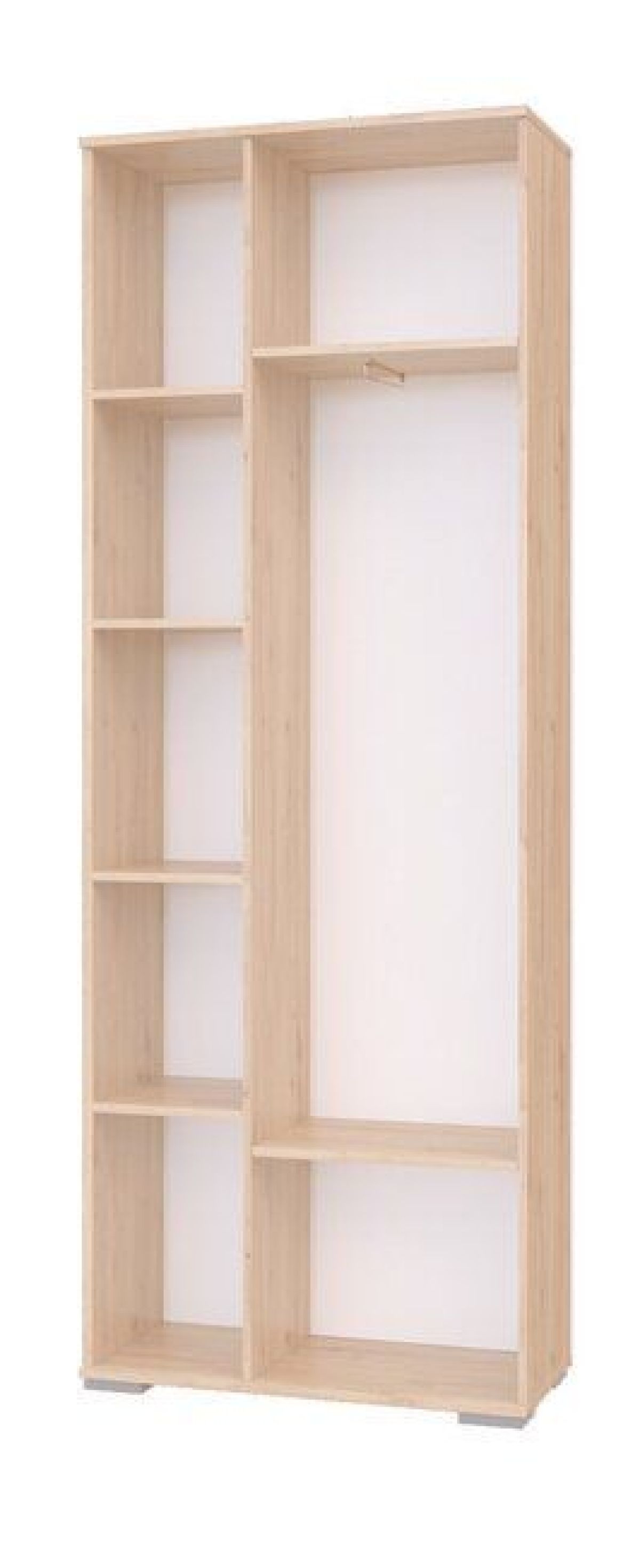 Модуль 4 шкаф: Шкаф разделен на 2 секции. В правой части находится выдвижная штанга для вешалки, а в левой полочки(5 шт.).