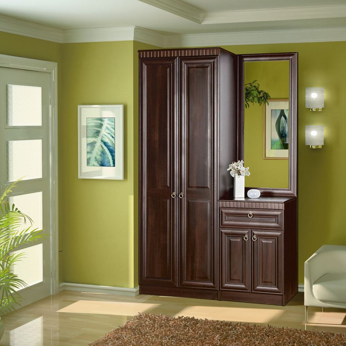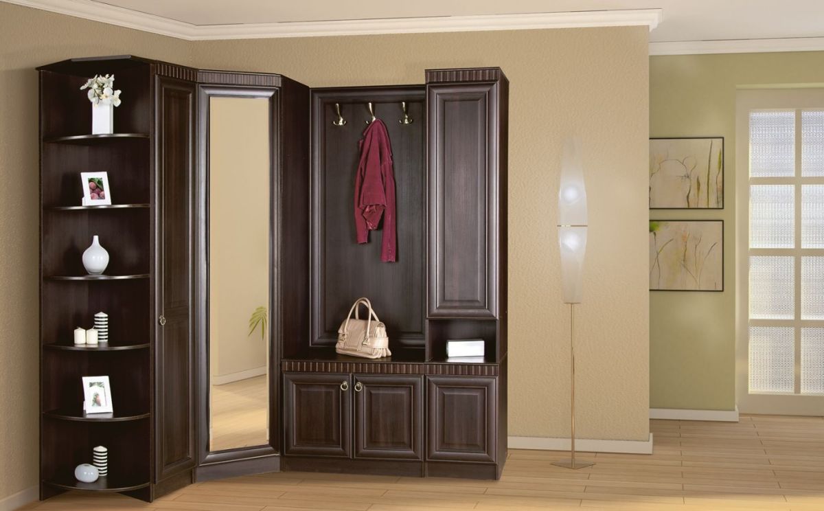 Серия включает все необходимые предметы мебели для прихожей: 1-, 2- дверные и угловой шкафы для одежды, тумба с панелью с крючками и тумба с зеркалом.