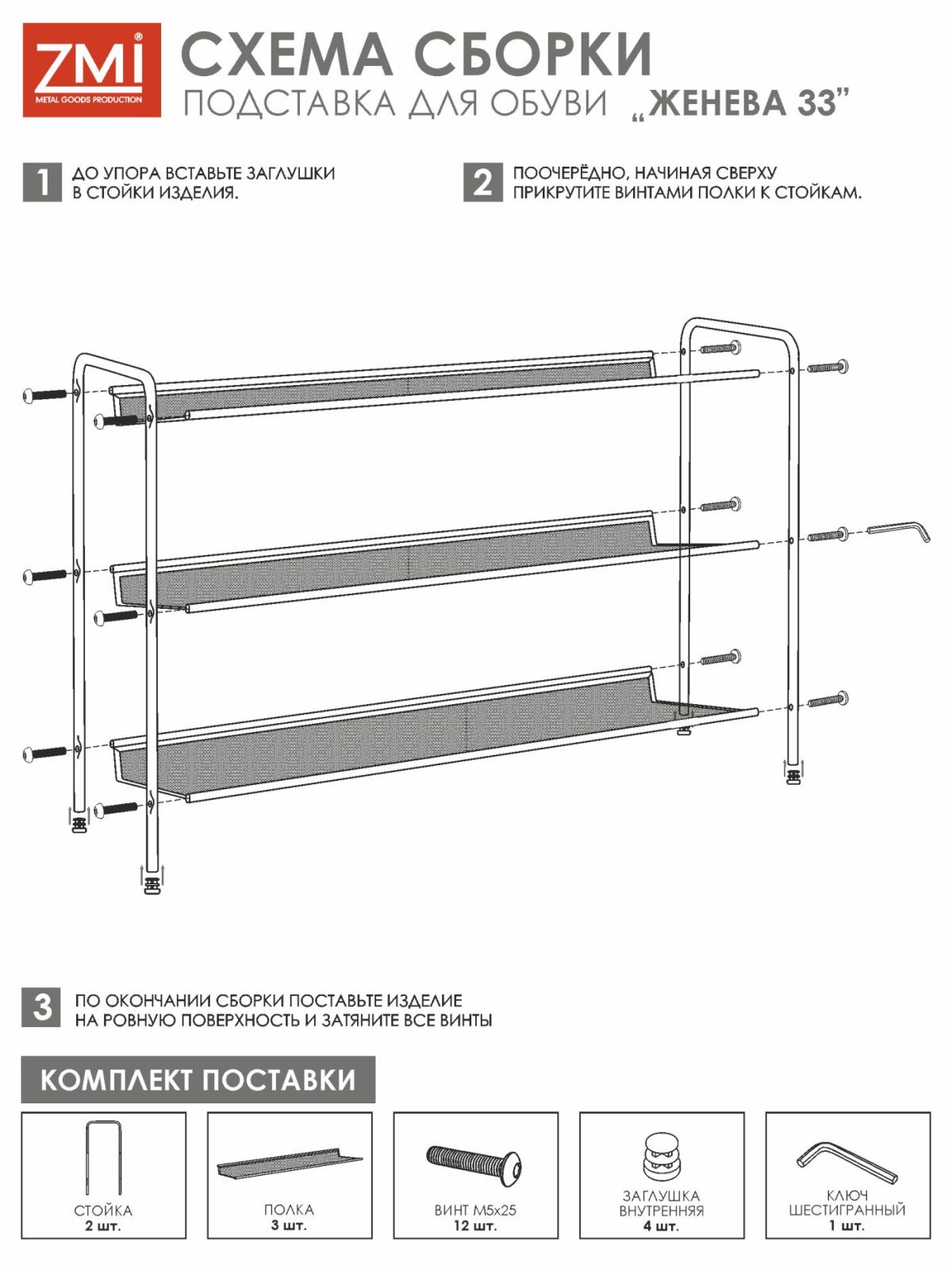 ПДО Ж33 ГР Подставка для обуви 3-х полочная "Женева 33" Графит